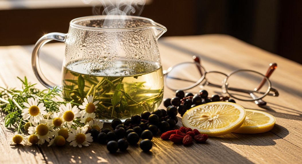Žolelių gėrimai veikia kitaip. Jie tiekia antioksidantus, kurie neutralizuoja oksidacinį stresą akių audiniuose. Taip pat juose esantys junginiai pagerina mikrocirkuliaciją aplink akiduobes ir ramina uždegimą sukeliančius procesus.