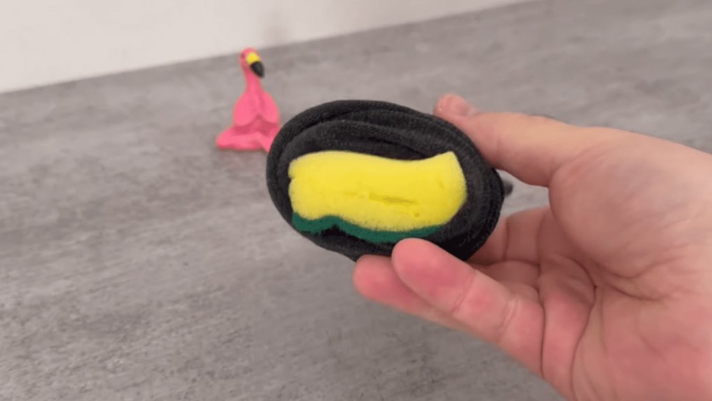 Stasė paėmė kempinę, vienoje pusėje padarė įpjovą ir užmovė ant šluotos koto galo. Tada užtraukė kojinę ant kempinės, pritvirtino gumyte – ir turėjo metrą ilgesnę ranką nei bet koks dulkių siurblys.