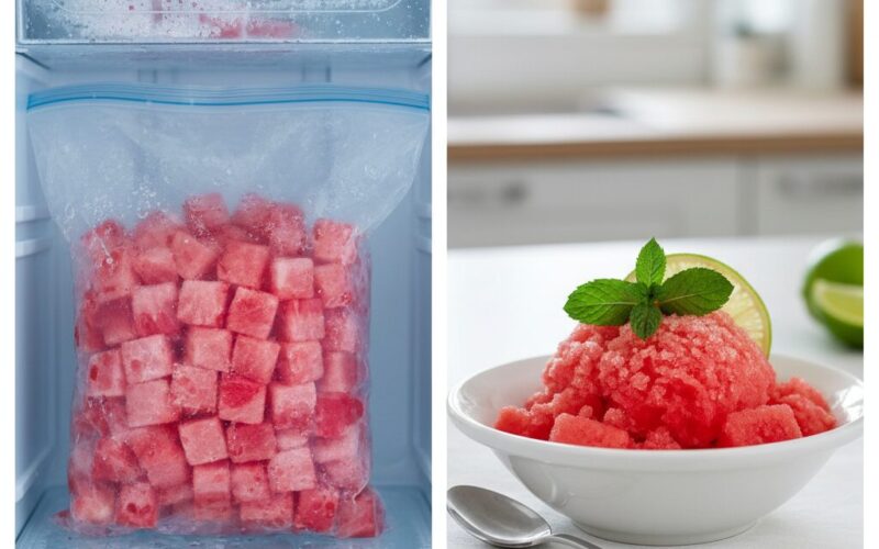Užšaldytas arbūzas – tai ne tik skanus, bet ir sveikas būdas pratęsti vasaros skonį šaltuoju sezonu. Šie gaivūs, natūralūs ledai be pridėtinio cukraus yra puikus sveikesnis desertas tiek suaugusiems, tiek vaikams!
