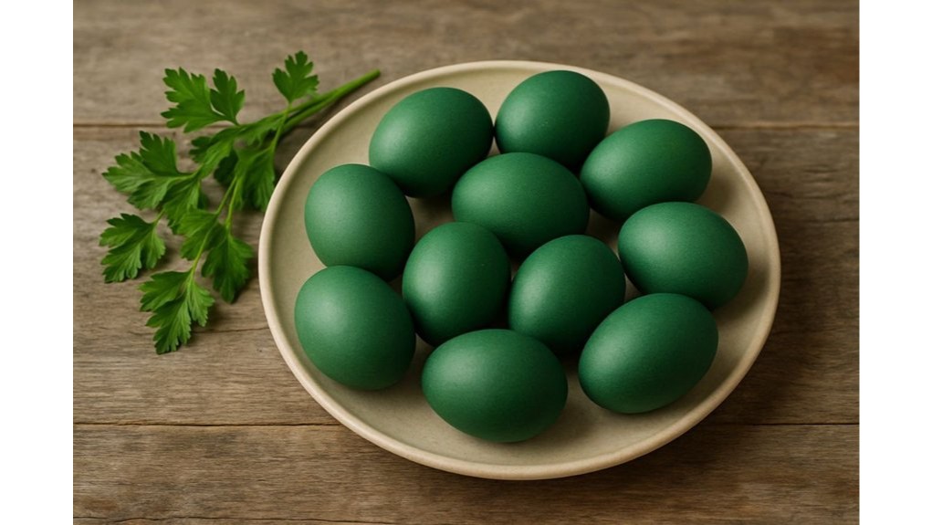 Žali Velykų kiaušiniai – gražu, bet kaip pasiekti? Špinatai – reikia daug, spalva dažnai blyški. Dilgėlės – reikia rinkti, rankos gelia. Maistiniai dažai – sintetika.