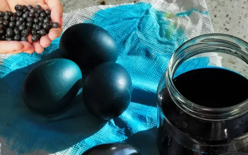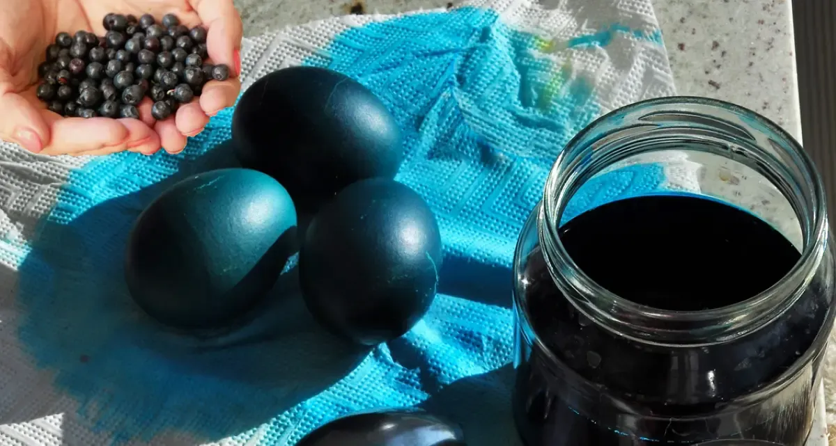 Trečia – karšti kiaušiniai į mėlynių nuovirą. Ir palikti keturiasdešimt minučių. Kuo ilgiau – tuo tamsesnė spalva.