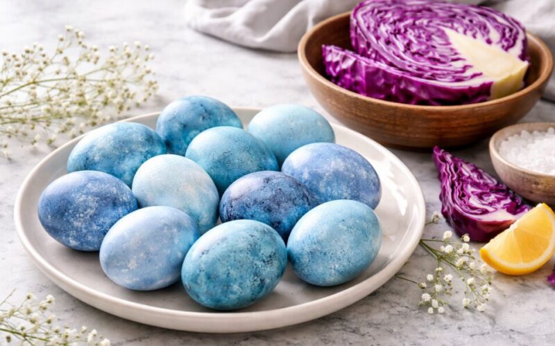 Raudonieji kopūstai turi antocianinų – natūralių pigmentų, kurie reaguoja su kiaušinio lukšto kalciu. Dėl to spalva gaunasi ryški ir stabili, nereikia jokių fiksatorių ar cheminių priedų.