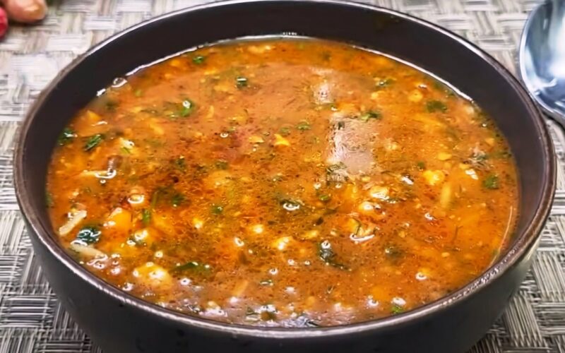 Patarimas: Jei norite pagaminti mėsišką charčo, galite iš anksto išvirti jautieną ir pridėti į sultinį.