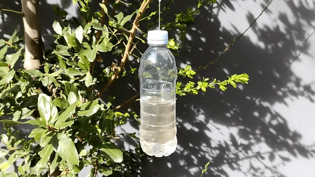 Butelio viduje – sulankstyti aliuminio folijos kamuoliukai. Jie atspindi saulės šviesą ir sukuria nenuspėjamus blyksnius, kurie paukščius gąsdina.
