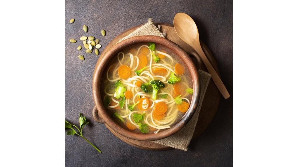 Daržovės papildo vitaminu A, vitaminu C ir antioksidantais, kurie mažina uždegimą ir stiprina organizmo barjerus. O makaronai ar ryžiai suteikia lengvai virškinamos energijos, kai apetitas sumažėjęs.