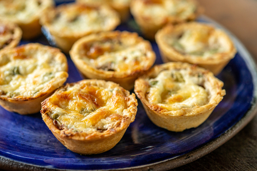 - Pasiruošimas iš anksto: įdarą galite pasiruošti dieną prieš ir laikyti šaldytuve, o prieš pat vaišes tik užpildyti tartetes, pabarstyti sūriu ir kepti