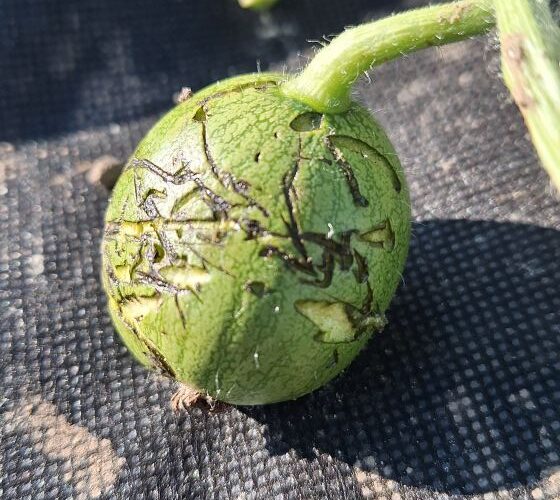 Vos pasirodęs ant stiebo, vos pradėjęs augti, o jau sužeistas. Ne vienas daržininkas yra susidūręs su situacija, kai jaunas arbūzas vietoj lygaus žievelės paviršiaus pasipuošia tarsi išraižytais ženklais. Žvilgsnis į vaisių kelia mintį apie vabzdžių invaziją ar net vandalizmą – bet kas iš tiesų kaltas?